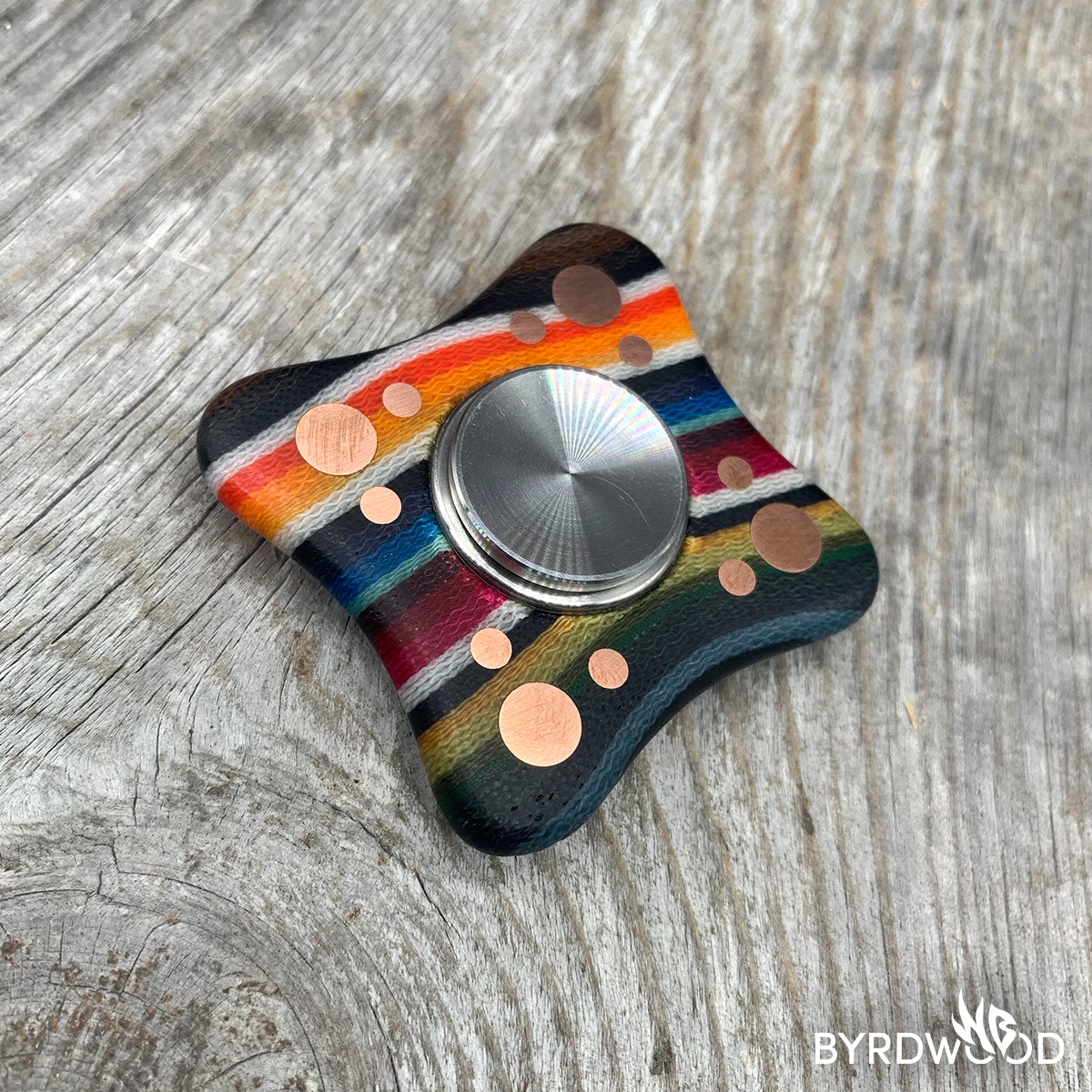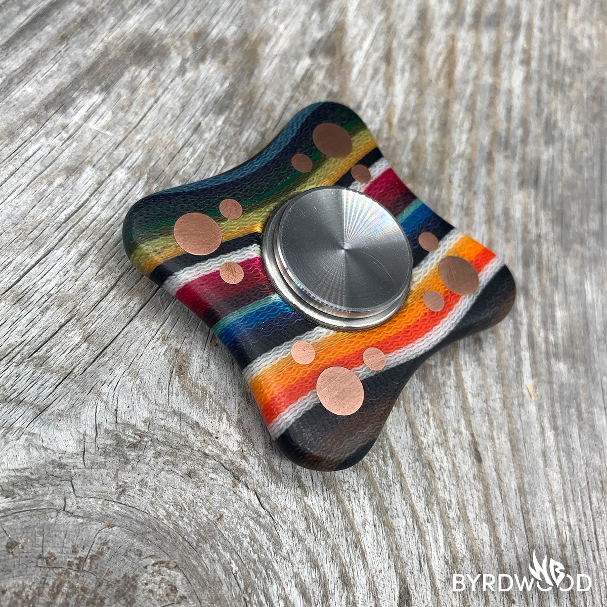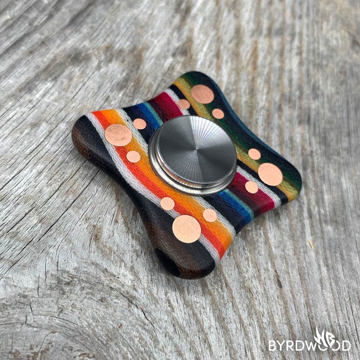 This styley SPNR is made of Wavy Mexican Blanket G-Carta and copper with a removeable r188 bearing.